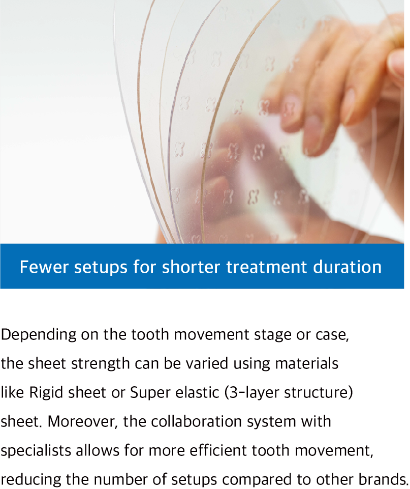 Depending on the tooth movement stage or case, five types of sheets are used in combination.